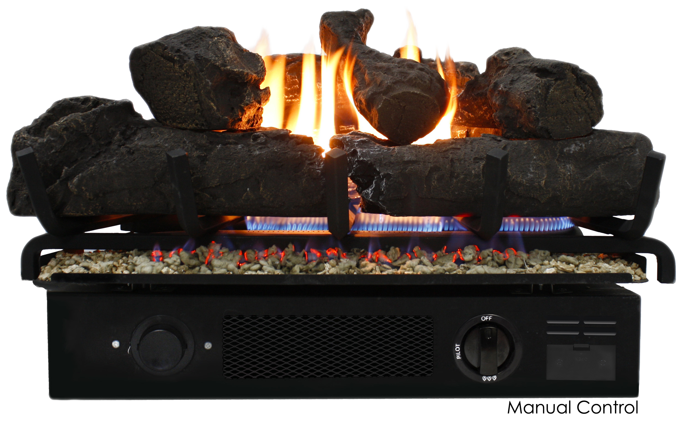 Transform your existing wood-burning fireplace in to a real flame gas-fueled fireplace and never worry about hauling wood, messy ashes or soot again. This heater comes with the most realistic natural fire and highly detailed logs that glow like real wood. Comes with seven ceramic logs, adding a realistic appearance to the high end appeal of the heater. The 24″ Vent Free 40,000 BTU Gas Log heater is perfect for rooms of 1,150 square feet or more. This vent free unit requires no electricity, making it a great alternate heat source during power failures, while being energy efficient at all times. The dual fuel version of this heater allows the professional installer to set up the unit for either propane or natural gas, with no manual switching required. Available in single fuel in some markets.