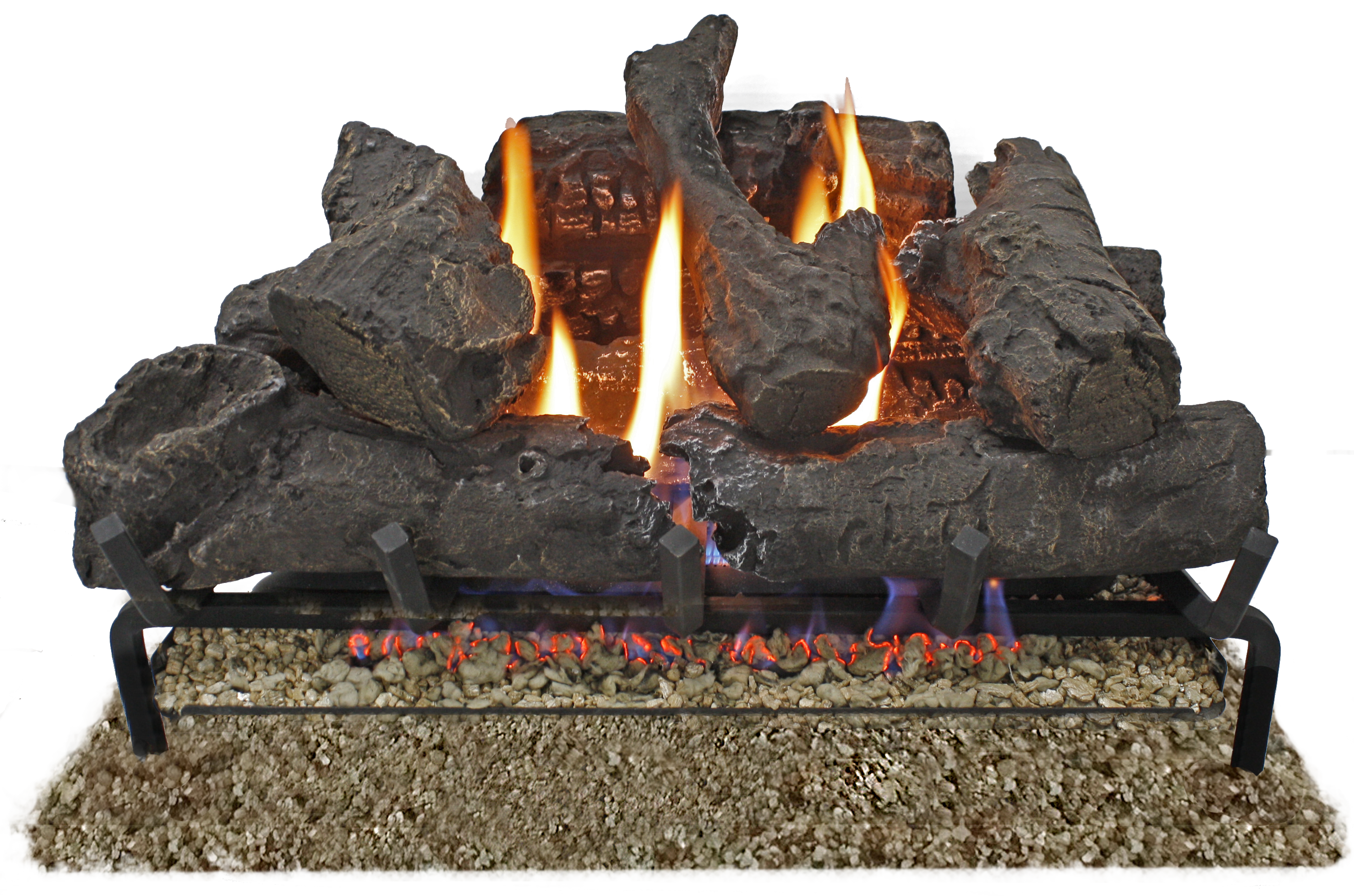 Transform your existing wood-burning fireplace in to a real flame gas-fueled fireplace and never worry about hauling wood, messy ashes or soot again. This heater comes with the most realistic natural fire and highly detailed logs that glow like real wood. Comes with seven ceramic logs, adding a realistic appearance to the high end appeal of the heater. The 48,000 BTU Vented 24” Gas Log heater is perfect for rooms of 1,150 square feet or more. This vented unit requires no electricity, making it a great alternate heat source during power failures, while being energy efficient at all times. The dual fuel version of this heater allows the professional installer to set up the unit for either propane or natural gas, with no manual switching required. Available in single fuel in some markets.