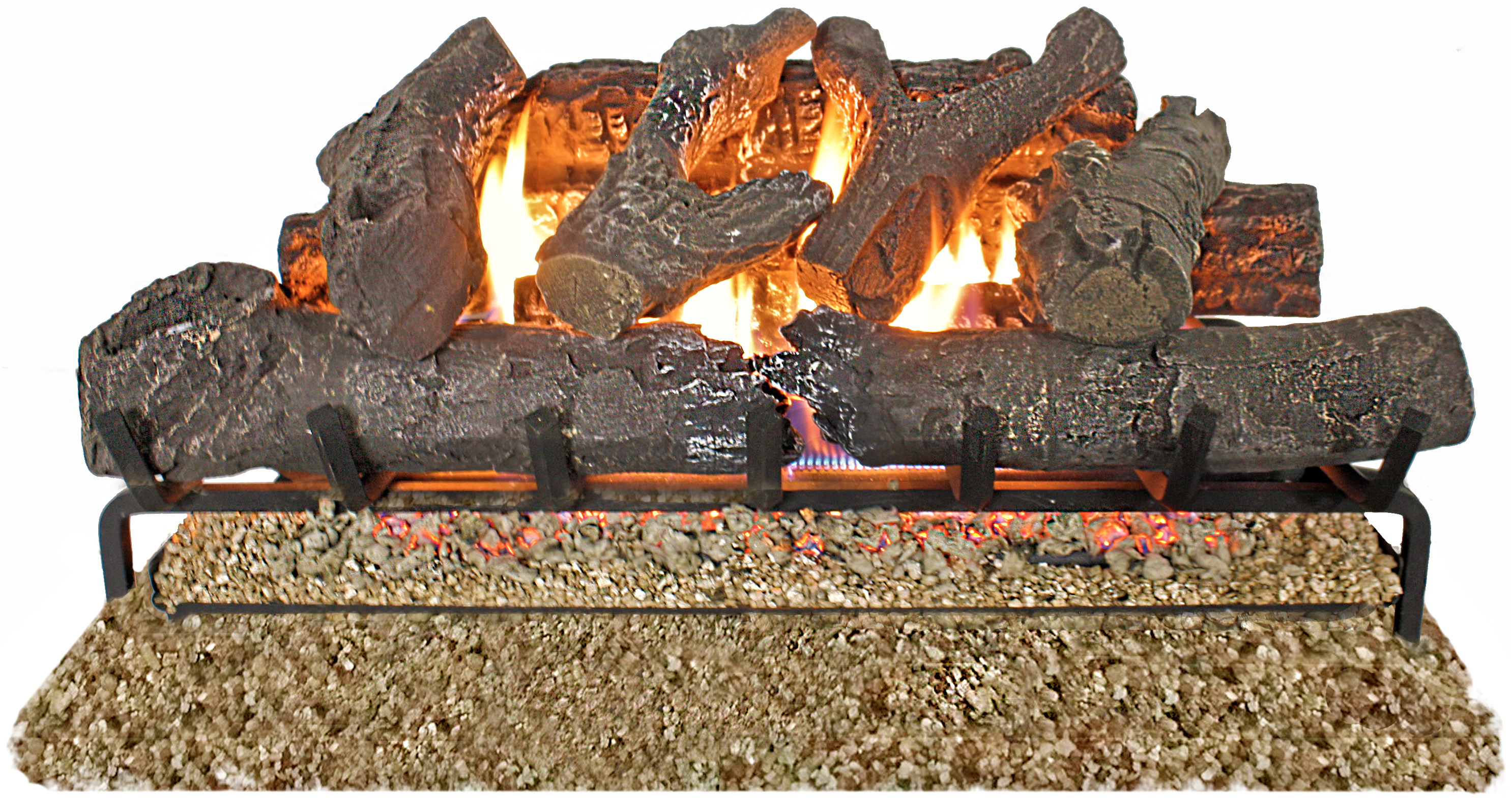 All of our Gas Log Sets come with two bags with decorative stones and embers.
