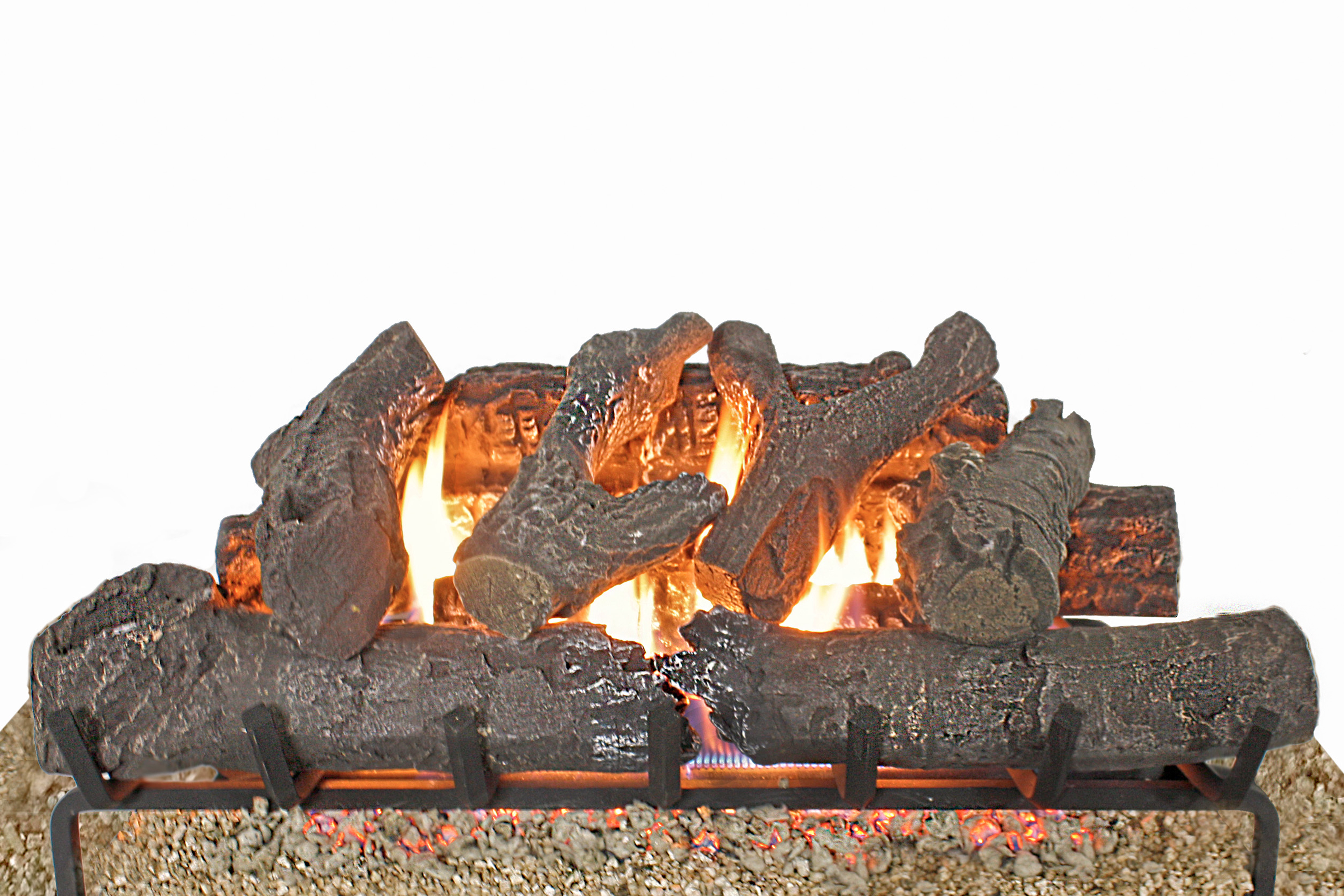 Transform your existing wood-burning fireplace in to a real flame gas-fueled fireplace and never worry about hauling wood, messy ashes or soot again. This heater comes with the most realistic natural fire and highly detailed logs that glow like real wood. Comes with eight ceramic logs, adding a realistic appearance to the high end appeal of the heater. The 48,000 BTU Vented 30” Gas Log heater is perfect for rooms of 1,200 square feet or more. This vented unit requires no electricity, making it a great alternate heat source during power failures, while being energy efficient at all times. The dual fuel version of this heater allows the professional installer to set up the unit for either propane or natural gas, with no manual switching required. Available in single fuel in some markets.